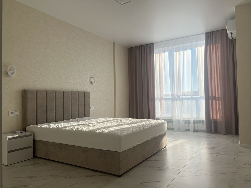 Вбудована кухня, меблі, шафи купе, кондиціонер, пральна машина, велике двоспальне ліжко, балкон