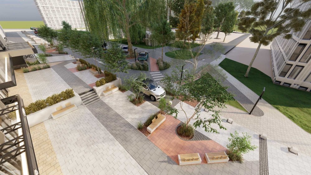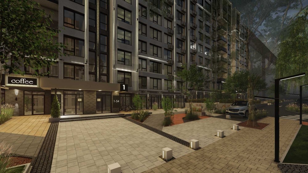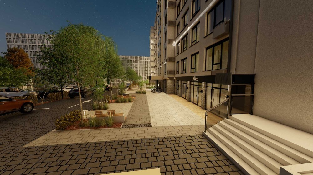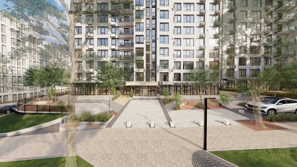- Комплекс з двором закритого типу, відеоспостереженням, зеленими зонами відпочинку, дит. майданчиками.