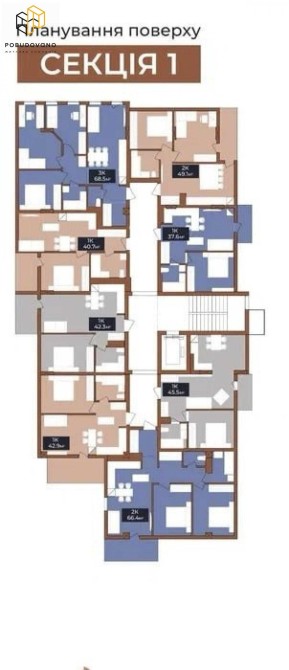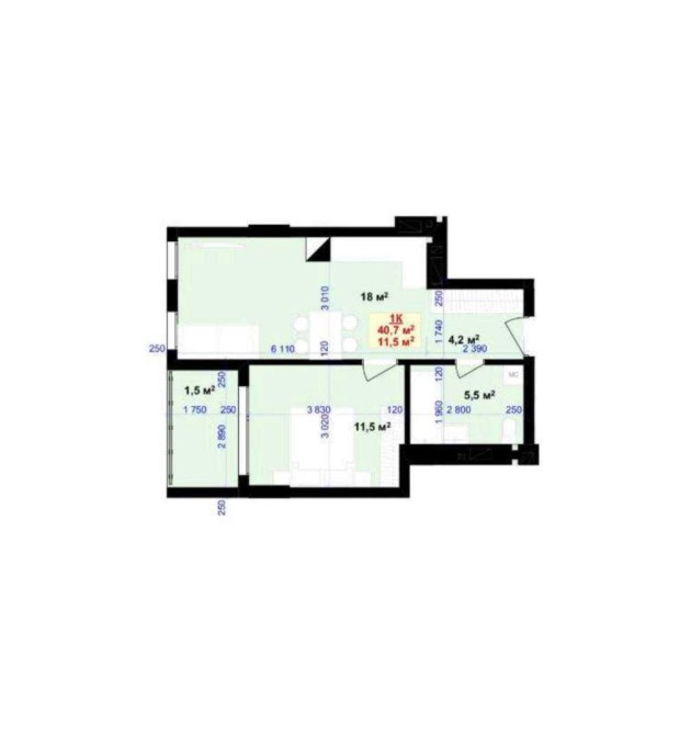 Площа по плануванню - 40,7 м2