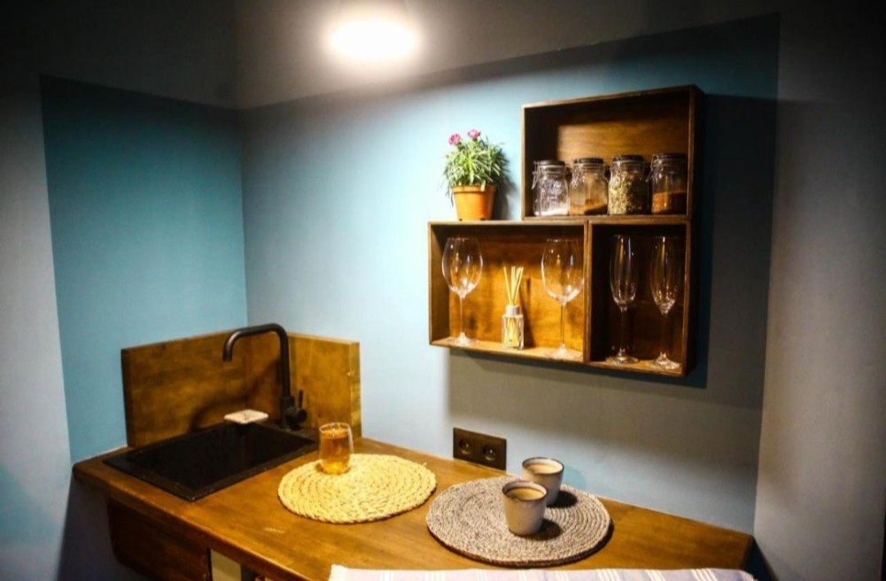Двоспальне ліжко, електричне опалення, бойлер, камін, пральна машинка, холодильник, індукційна плита, мікрохвильова піч.