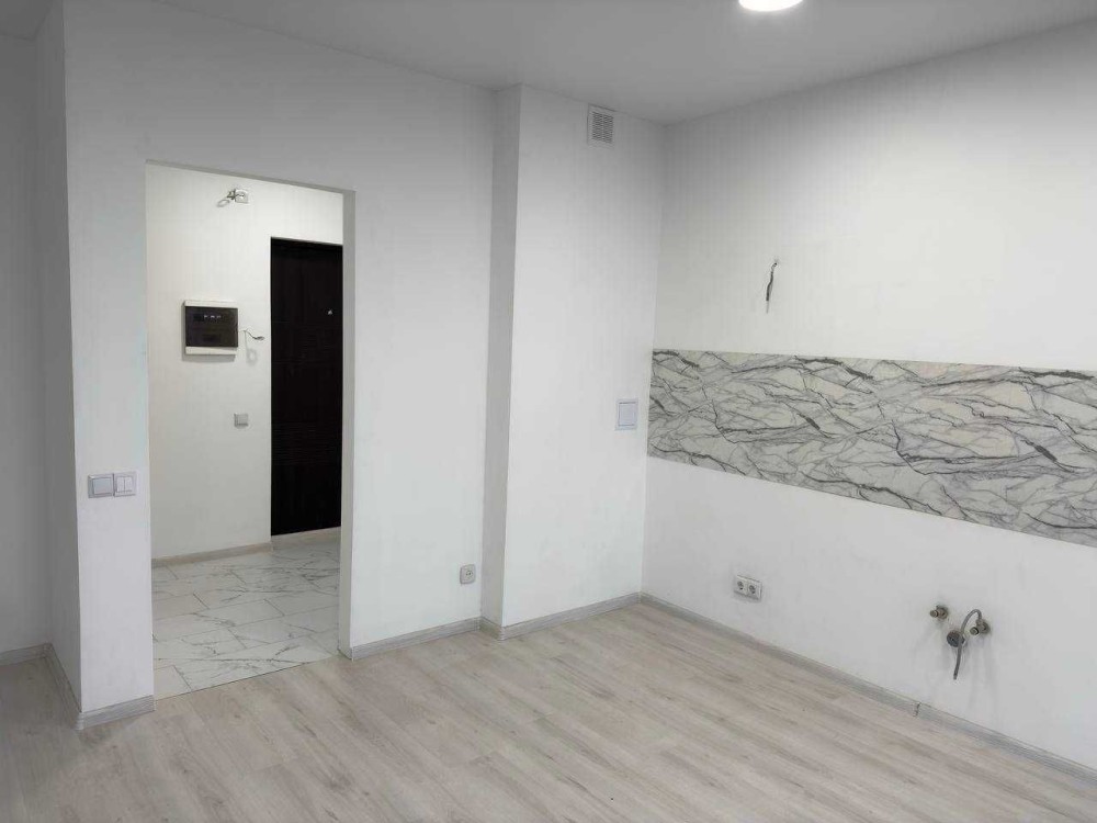 Сучасна квартира з новим ремонтом, у якій ще ніхто не проживав. Завдяки вдалому плануванню легко трансформується у повноцінну 1-кімнатну квартиру - достатньо встановити перестінок.