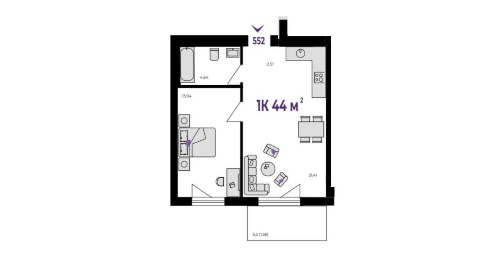 • Загальна площа 44 м2
