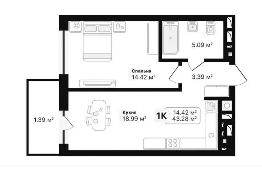 • Загальна площа 43.28 м2