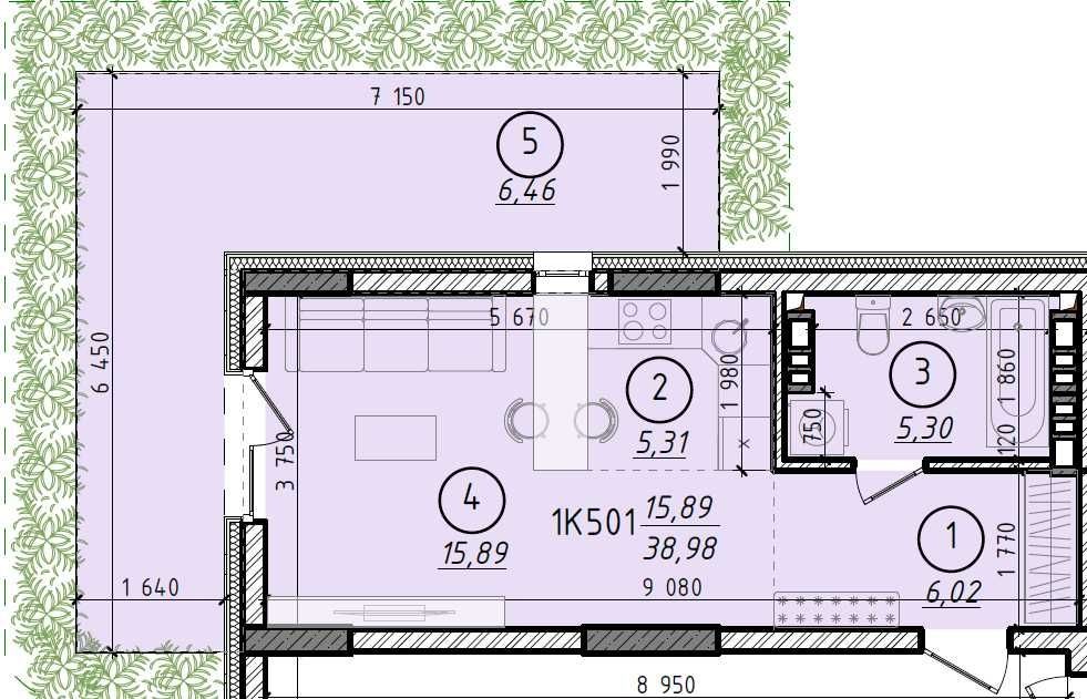 • Загальна площа 38.98 м2