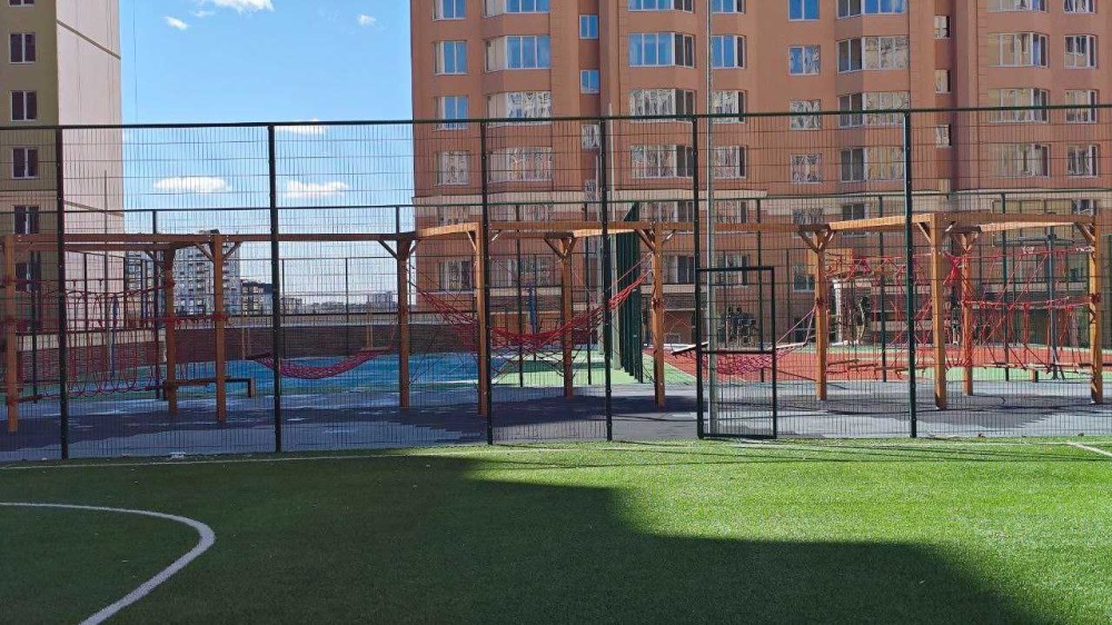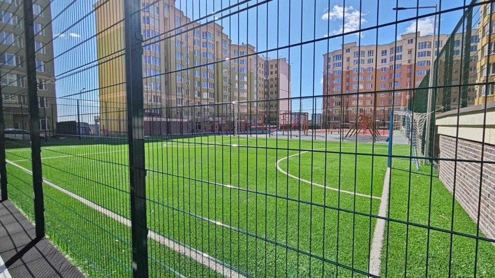 - Безліч дитячих, спортивних та ігрових майданчиків, сквер, озеро, фонтан, спортклуб з басейном.