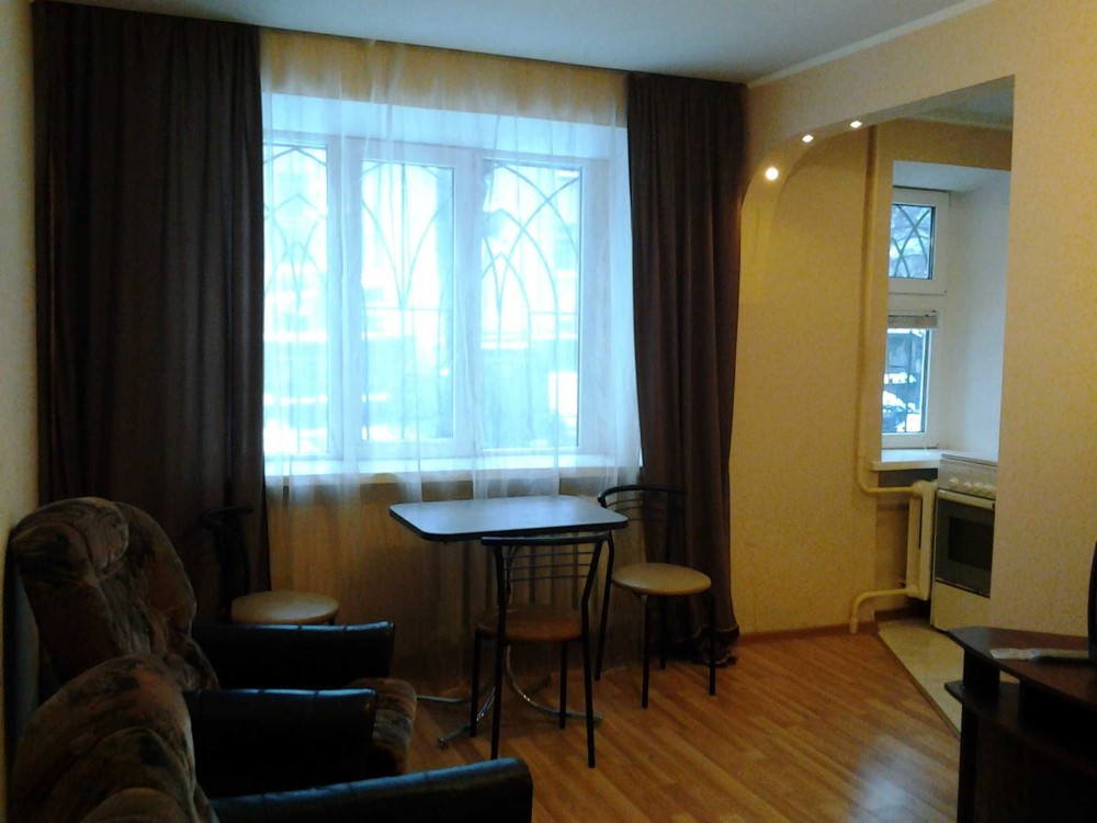 Однокімнатна квартира студія, 1-й поверх 5-пов. цегляного будинку, кімната 16кв.м., кухня 5кв.м., с/в суміщений з нормальною ванною, без балкона.