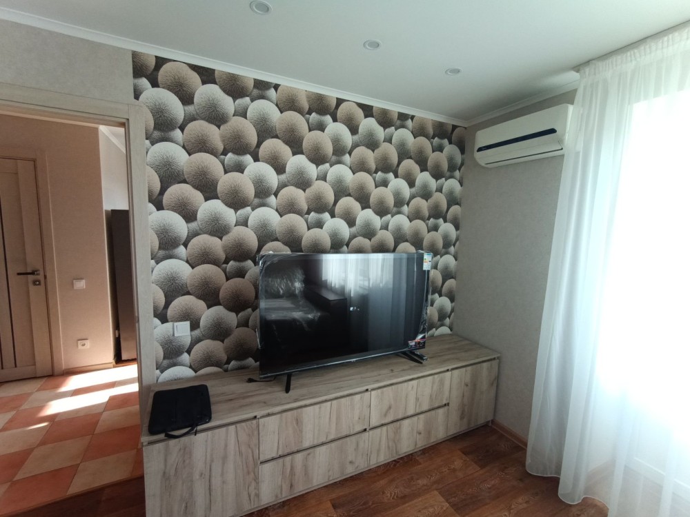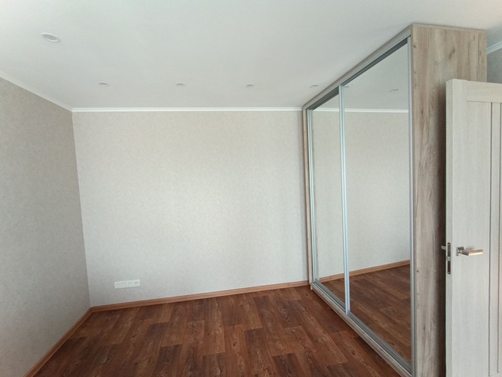 Квартира меблевана: новий розкладний диван(ортопедичний), дві шафи-купе, кухонні меблі, стінка.