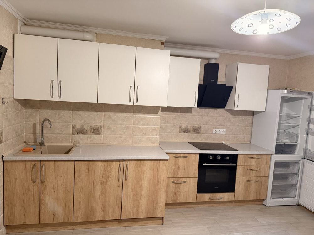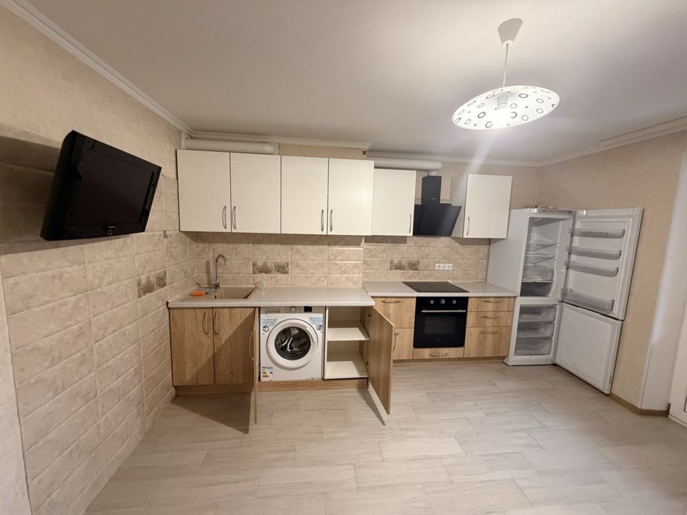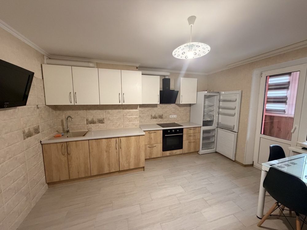 Перша здача. Пропонується в оренду сучасна квартира в новобудові біля м. Житомирська (Берестейський пр-т, 131а). В будинку є генератор (завжди є опалення, вода та працює ліфт). Квартира укомплектована всіма необхідними меблями та технікою. У кімнаті - двоспальне ліжко, розкладний диван, письмовий стіл, кондиціонер, телевізор, велика шафа для одягу. Санвузол суміщений, душова кабінка. Тихий двір, велика парковка. До метро Житомирська - 10 хвилин пішки. Вартість 16000 грн. Умови оренди: оплата за два місяці та послуги рієлтора (50%). комісія: 50%