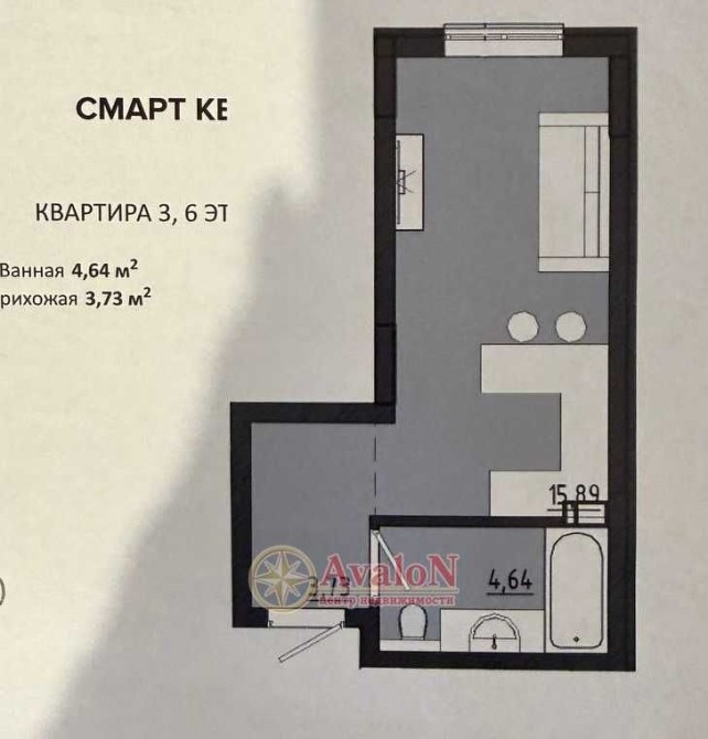 • Площа кухні 6 м2