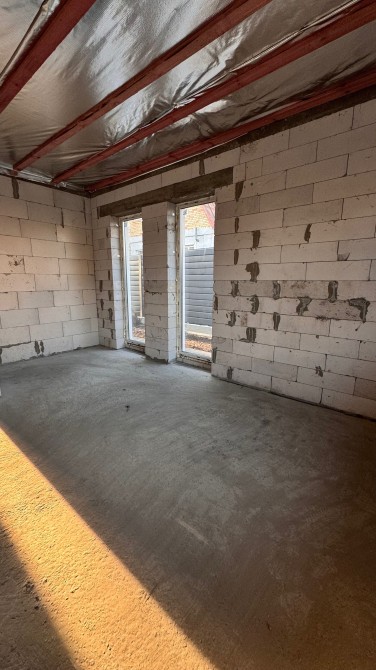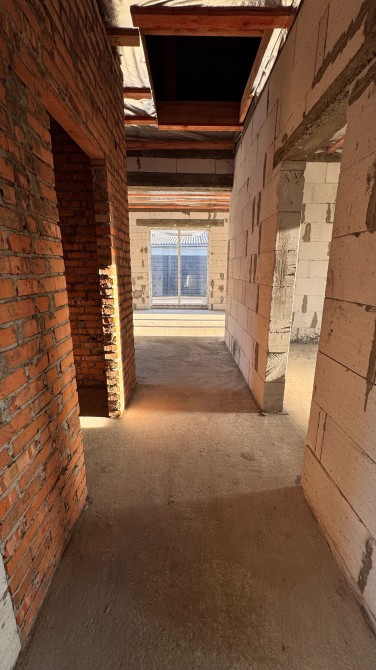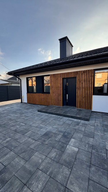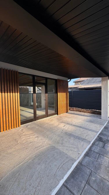 Побудований з газоблоку, утеплений графітовим пінопластом 100мм, декоративна штукатурка, часткове оздоблення деревяною терморейкою.