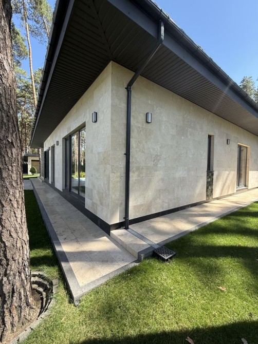 • Фасад — натуральний травертин, підвіконня з травертину