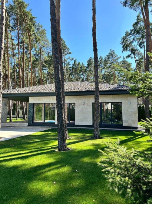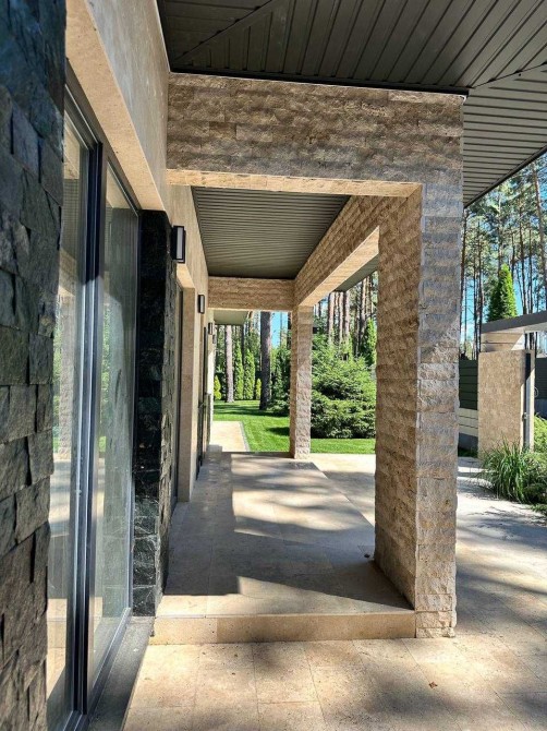 Рівень, який у передмісті з’являється одиницями. Одноповерхова резиденція серед сосен у оздобленні - ТРАВЕРТИН