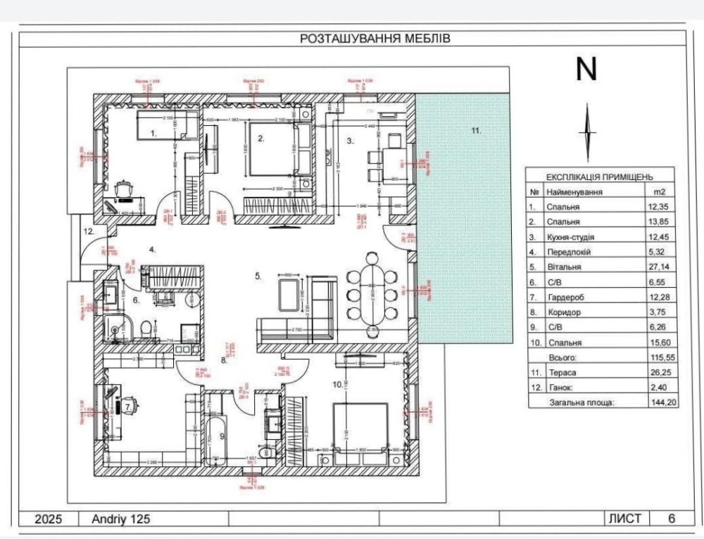 Загальна площа 120 кв.м + тераса 28 кв.м. Земельна ділянка 6 соток.