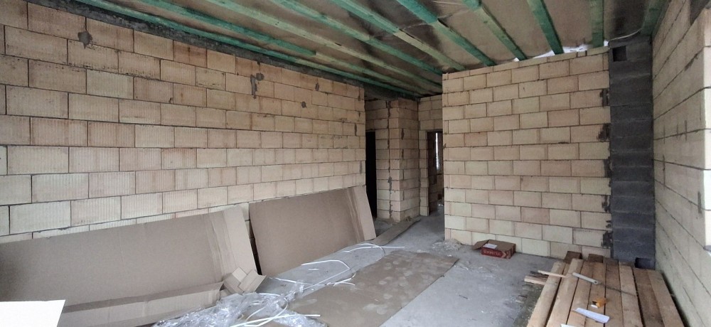 Побудований з керамоблоку та утепленний 150 мм пінопластом.