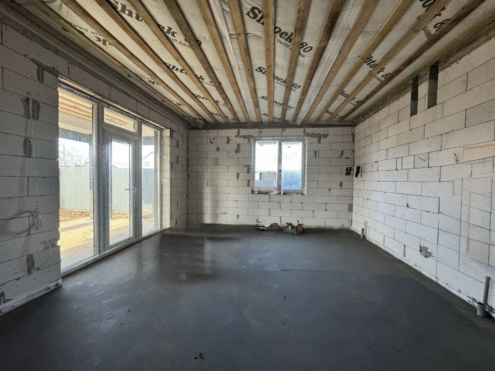 В будинку виконані роботи: тепла підлога, розводка мокрих точок та опалення, лазерна стяжка.