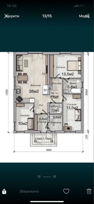 Площа 110м2 +13 м2 тераса, 4,6 -4.8 соток ділянка