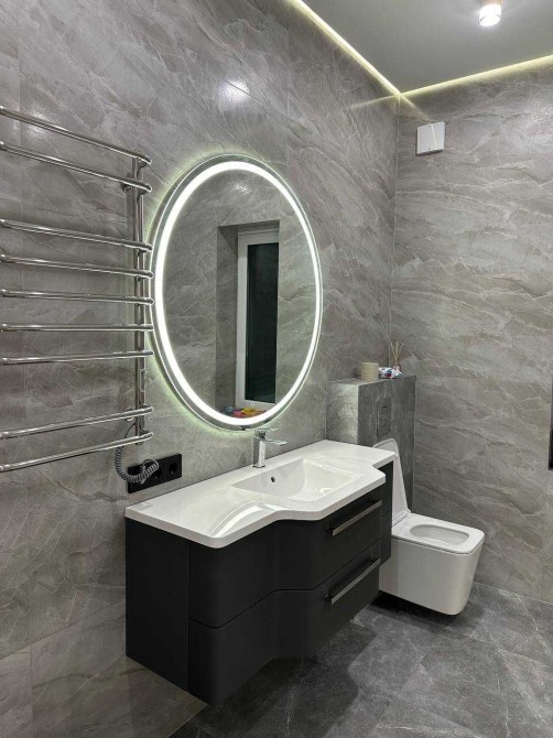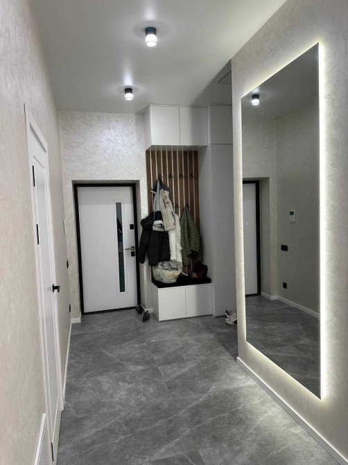 Передбачено теплу підлогу в коридорі, кухні та санвузлах. Меблі встановлені на кухні та у ванній кімнаті.