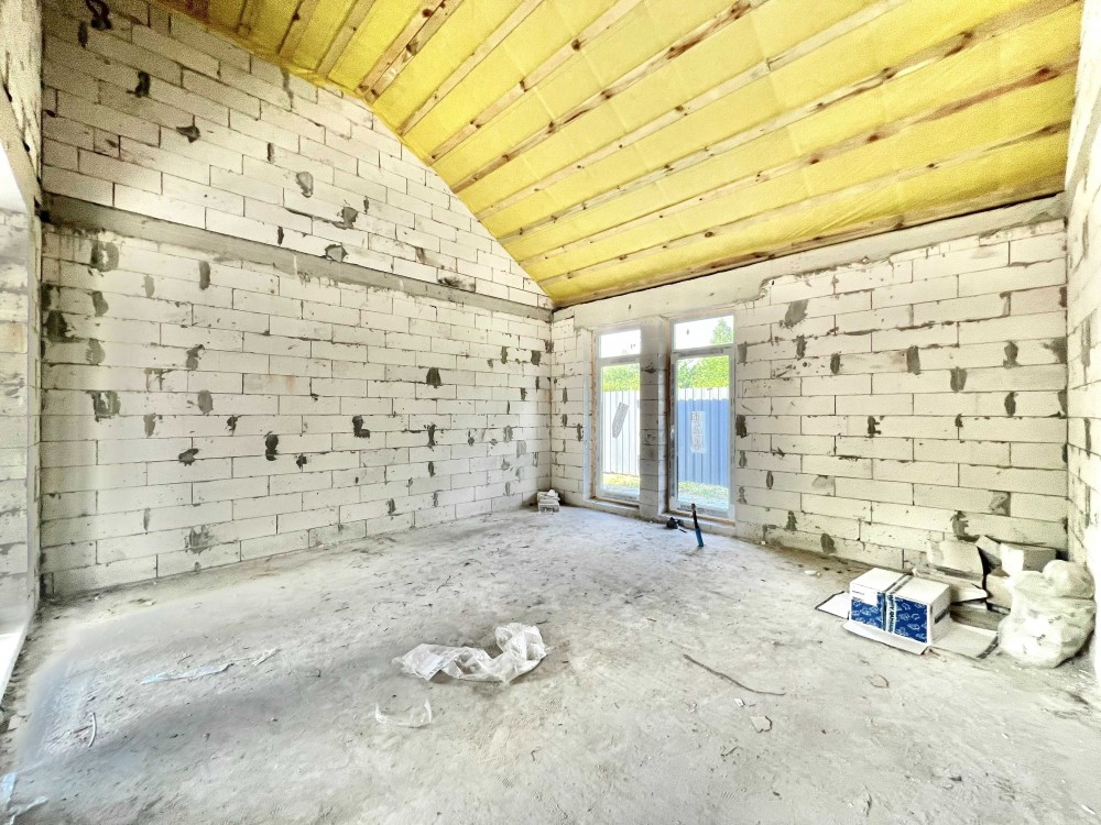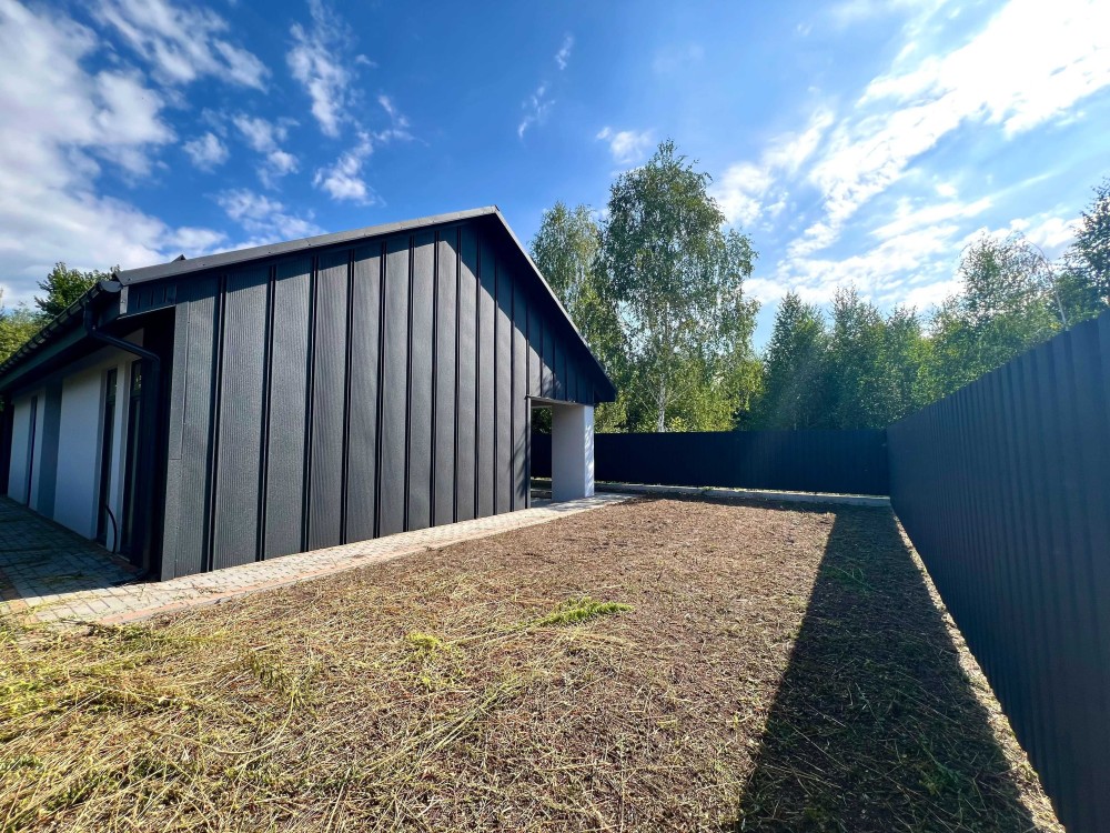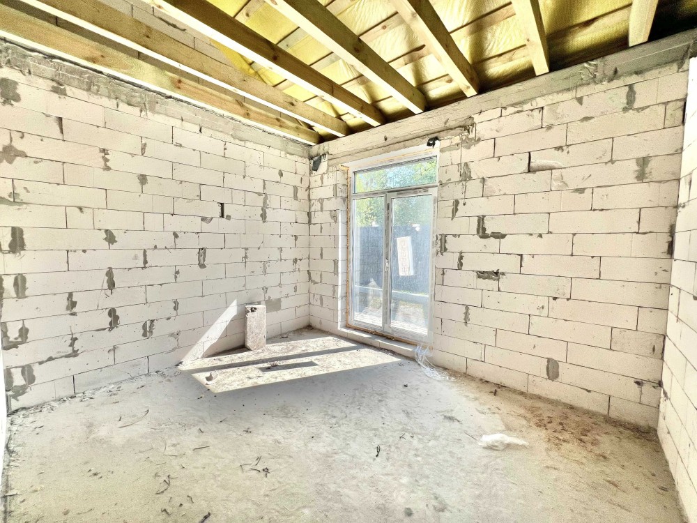 Будинок з комунікаціями: електрика, свердловина, септик. Побудований з газоблоку, дах - металопрофіль, встановлені ворота та огорожа.