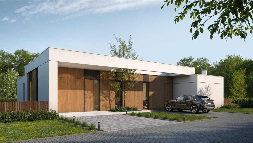 Будинок створений у комфортному одноповерховому форматі без сходів та зайвих метрів. Просторе планування, велика тераса та чітко відокремлена приватна зона роблять його ідеальним для постійного проживання.