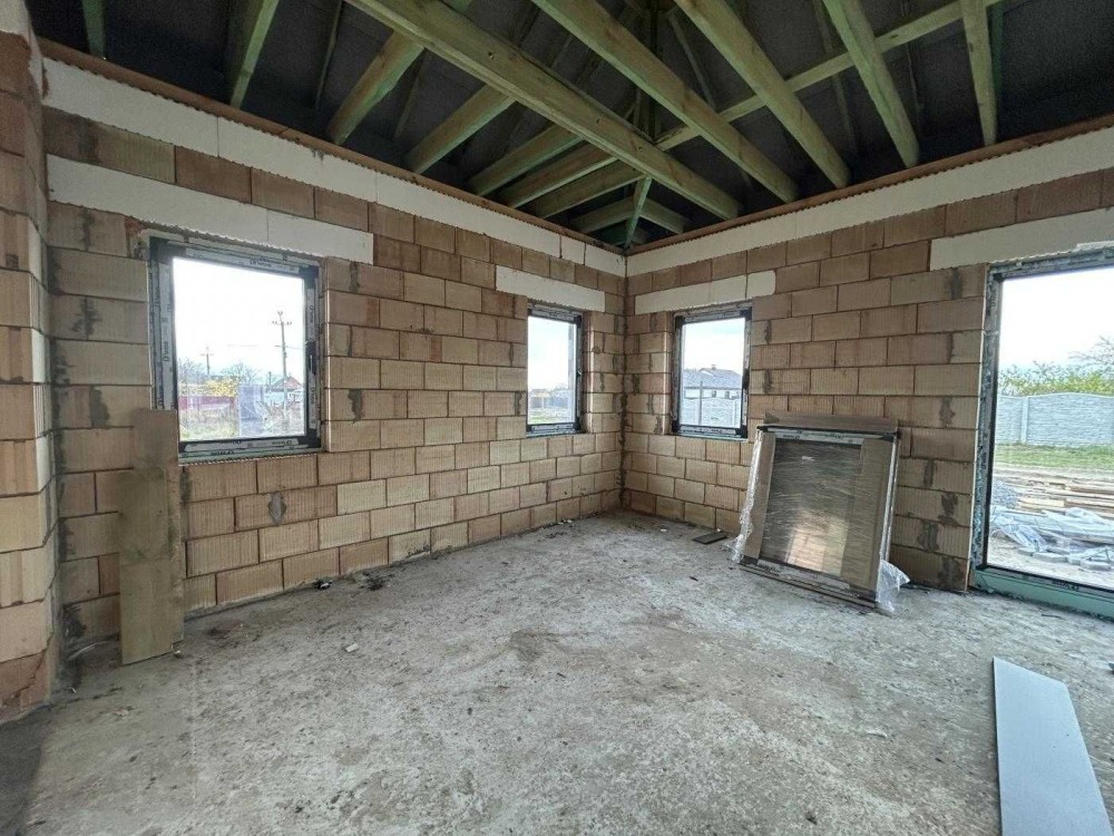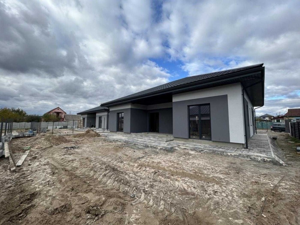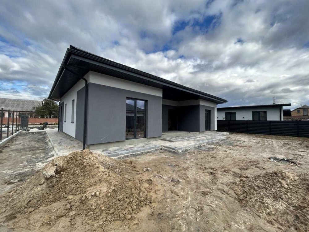 Продається сучасний будинок площею 110 м², збудований з керамоблоку з якісних матеріалів. Планування дуже зручне та продумане: 3 кімнати, простора кухня-вітальня з виходом на терасу, 2 санвузли, є комора. Панорамні вікна наповнюють простір світлом і створюють особливу атмосферу.