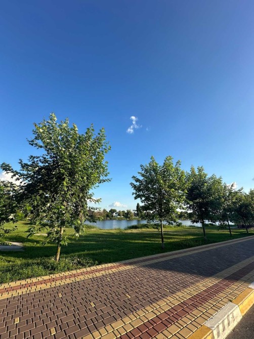 Поруч мальовниче озеро з набережною