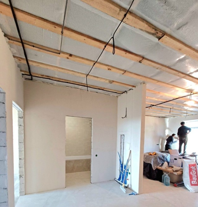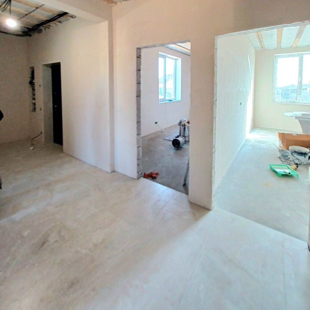 -під чистову - розведена тепла підлога, сантехніка, зроблена стяжка підлоги , штукатурка стін, тротуарна плиточка у дворі - 95000