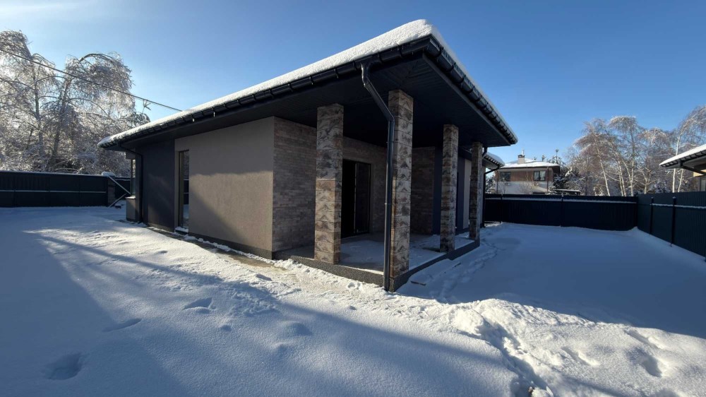 Будинок збудований у 2025 році та розташований на рівній ділянці площею 5,7 сотки правильної форми. Територія озеленена соснами, що створюють природну атмосферу та відчуття приватності. Передбачено паркування для трьох автомобілів, встановлені автоматичні відкатні ворота. Побудований з керамоблоку, утеплений мінеральною ватою, покрівля виконана з металочерепиці. Стан-під чистове оздоблення: виконані стяжка, штукатурка стін, змонтована система теплої підлоги, підключене індивідуальне газове опалення, заведені всі необхідні комунікації — електропостачання, свердловина, септик. Формат без меблів дозволяє завершити інтер’єр відповідно до власного проєкту без переробок.