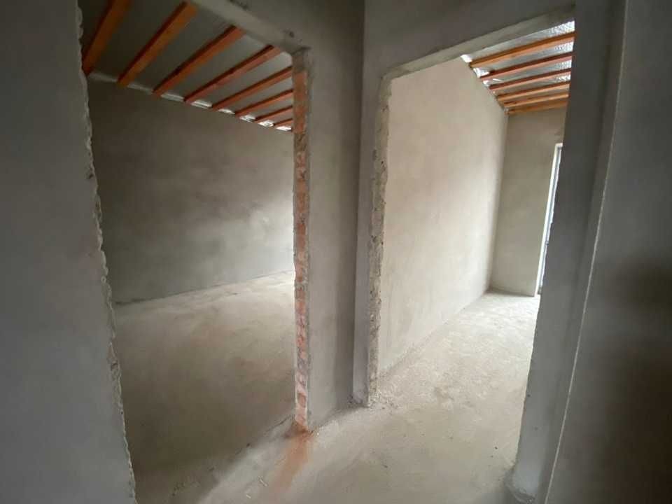 У будинку вже виконана цементно-піщана штукатурка стін, чистова стяжка підлоги, сходи бетонні. Встановлені 2-камерні вікна та двері. До будинку заведені усі комунікації: центральні водопостачання та водовідведення, 7 кВт електрика.