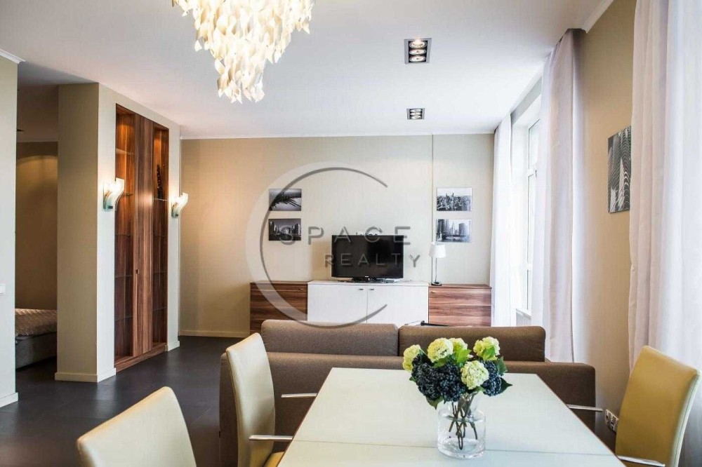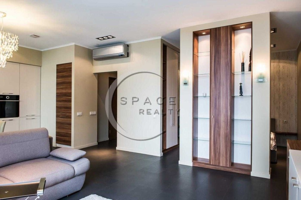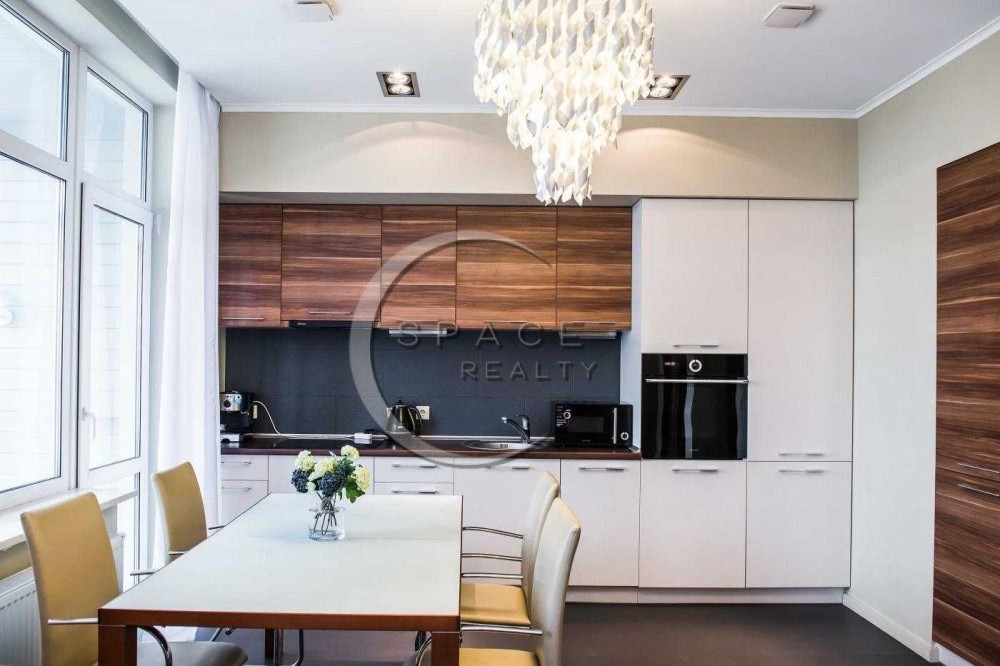 Квартира виконана з якісним ремонтом із дороговартісних матеріалів у стриманих, але теплих тонах. Повністю укомплектована меблями та побутовою технікою від провідних виробників.