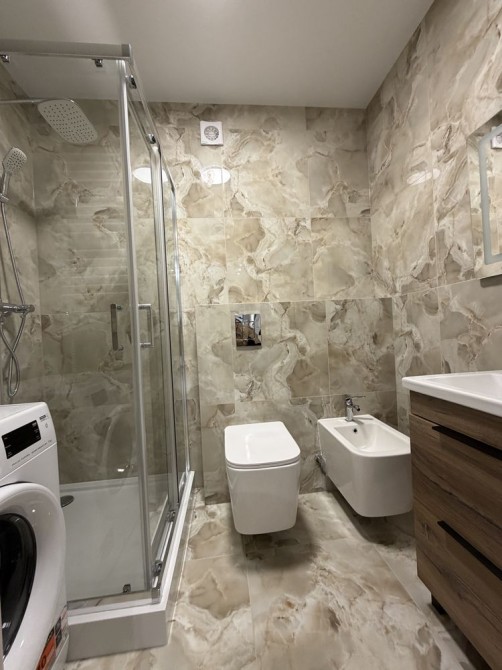 Укомплектована всією необхідною побутовою технікою. Є пральна машина, посудомийна машина, холодильник, мікрохвильова, кондиціонер, електрична духовка, газова поверхня, газовий котел. Опалення індивідуальне газове, підігрів підлоги