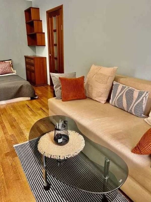 Вікна виходять у тихий двір. Квартира повністю мебльована: є диван та повноцінне двоспальне ліжко. Встановлено кондиціонер та бойлер для гарячої води. Є засклений балкон. Опалення централізоване.