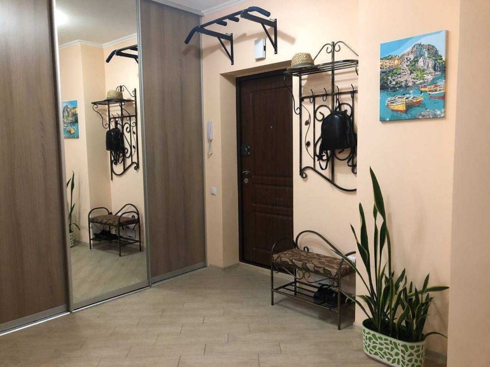 ортопедичний диван (205×160), велика шафа-купе, посудомийна машина, пральна машина, холодильник, мікрохвильовка, кондиціонер, телевізор, робочий стіл і крісло, праска, посуд та столові прибори. Є Wi-Fi.