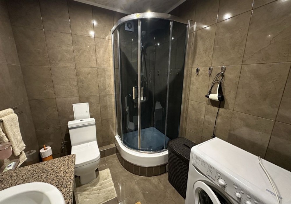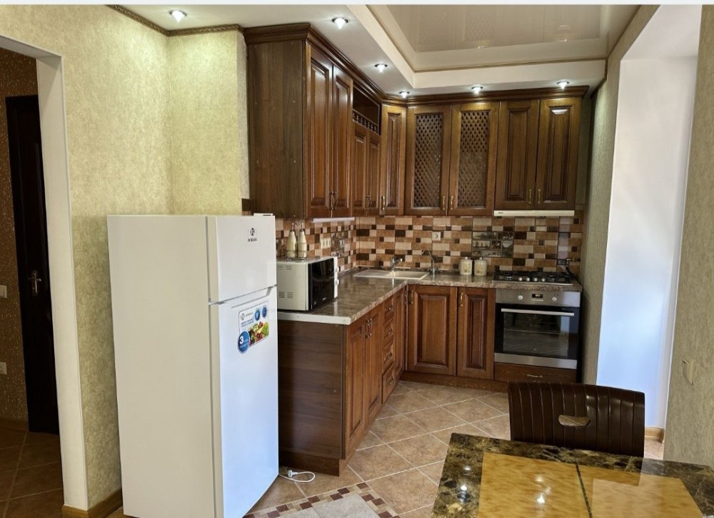 Квартира з якісним євроремонтом, повністю укомплектована меблями та технікою: холодильник, пральна машина, мікрохвильова піч, плита, електрочайник, фен. Є кондиціонер, підігрів підлоги, гардероб, балкон.
