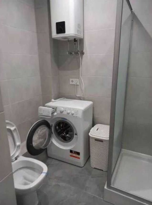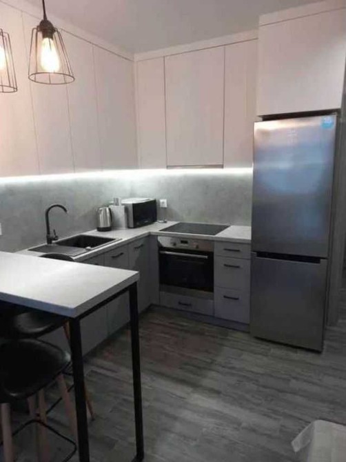 Оснащення: холодильник, варильна поверхня, духова шафа, посудомийна машина, бойлер, пральна машина, витяжка, електрична рушникосушарка.