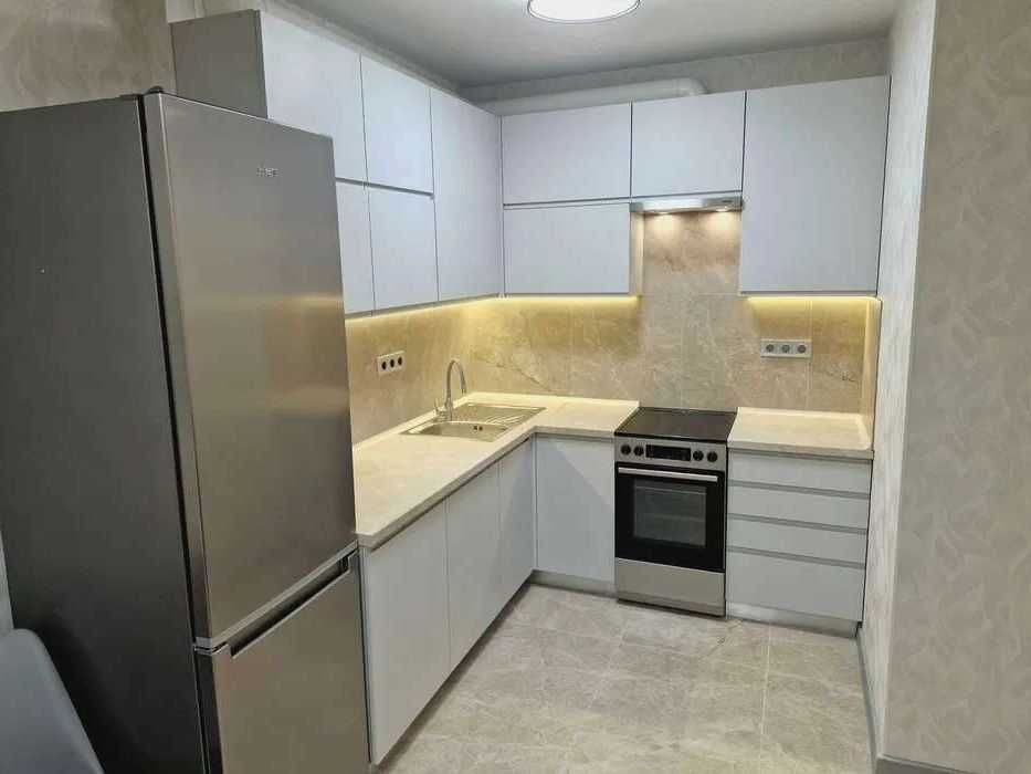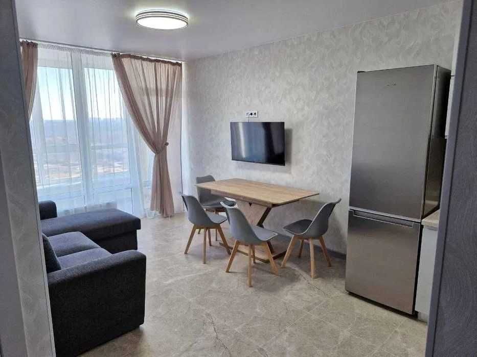 Квартира з чудовим ремонтом в сучасному охороняємому ЖК. Обладнана необхідними меблями та побутовою технікою. В будинку встановлено генератори на ліфт,воду та опалення. Поруч зручна транспортна розв'язка і розвинена інфраструктура.