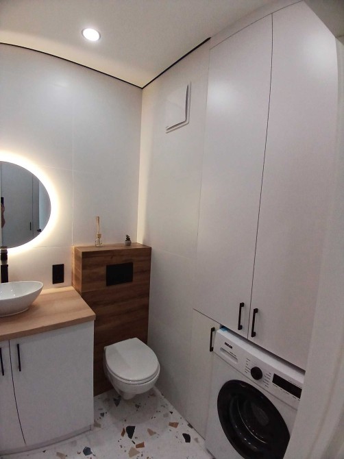 Ремонт виконаний у світлих тонах, що створює сучасну та затишну атмосферу.