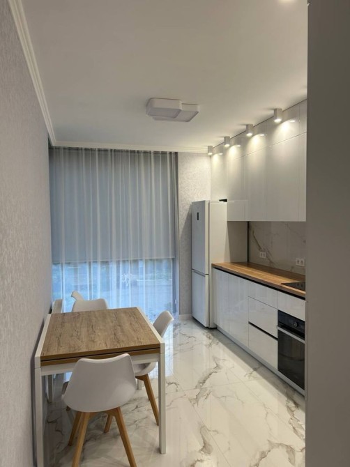 Квартира повністю мебльована якісними меблями та технікою (холодильник, пральна машина, варильна поверхня, духова шафа, мікрохвильова піч, газовий котел, витяжка, кондиціонер, бойлер). Кухня облаштована як для щоденного комфорту, так і для приготування вишуканих страв.