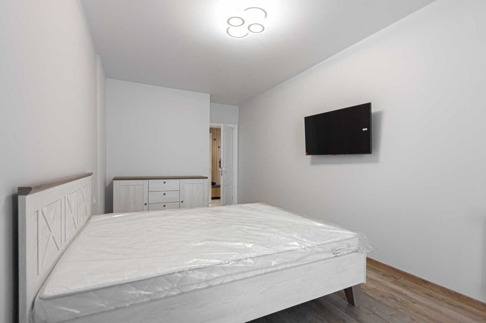 Затишна квартира з функціональним плануванням має: окрему мебльовану спальну кімнату з міжкімнатними дверима. Кухня площею 15 м2 обладнана шафами для посуду, холодильником, плитою, витяжною вентиляцією, посудомийною машиною, духовкою, мікрохвильовою піччю, а також має зручну обідню зону. Санвузол з якісною сантехнікою.