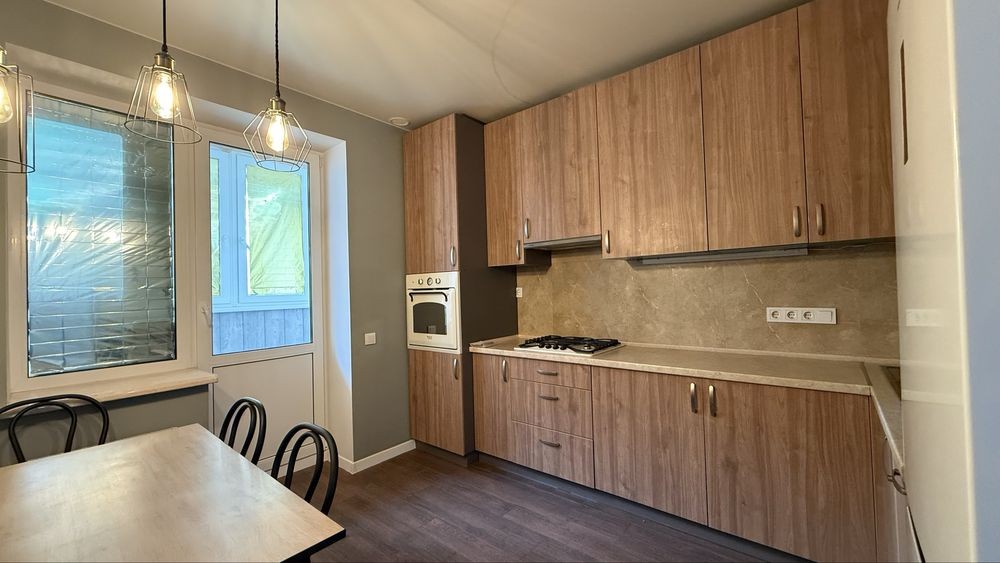 Квартира повністю укомплектована всіма необхідними меблями та технікою, є балкон