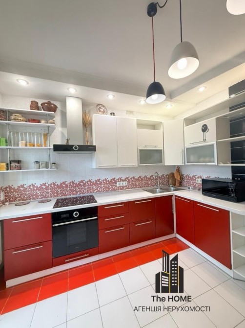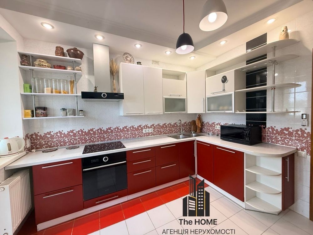 стильні меблі та зручний великий диван , кухня з вбудованою технікою (духова шафа,електроплита, холодильник, чайник,посудомийна машина, пральна машина, система очистки води, оптиволокно),великий балкон.