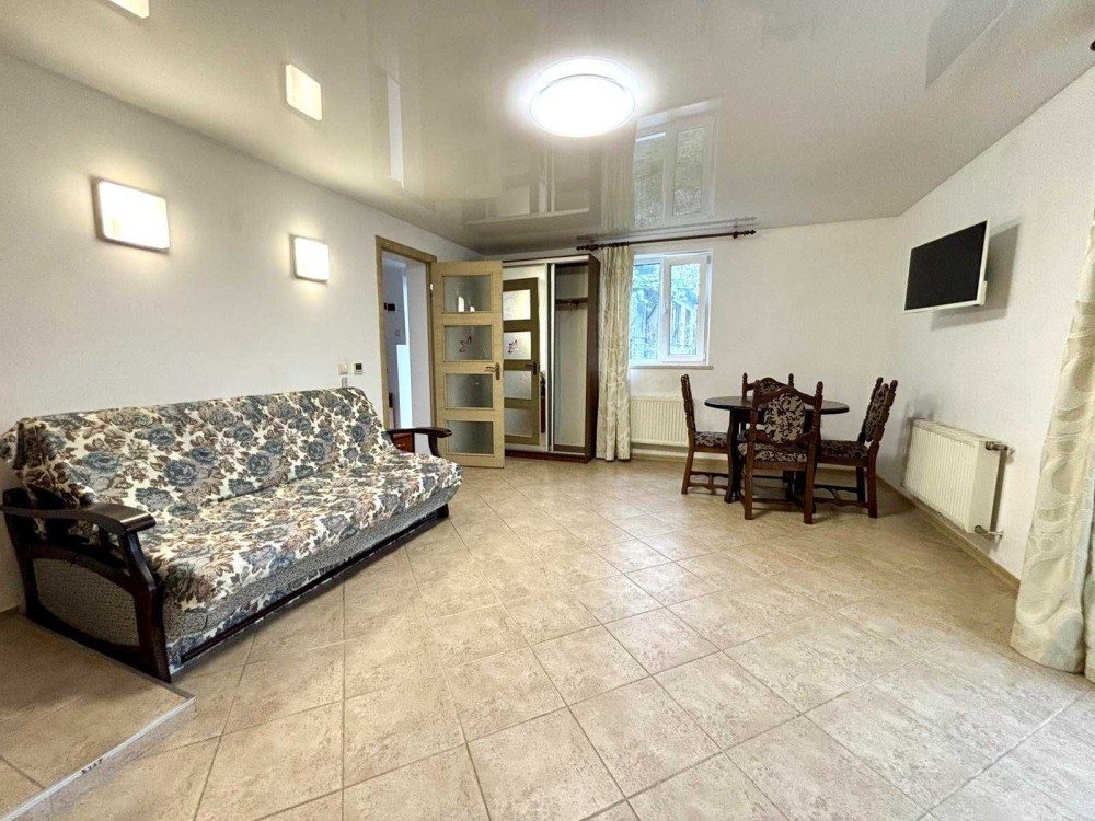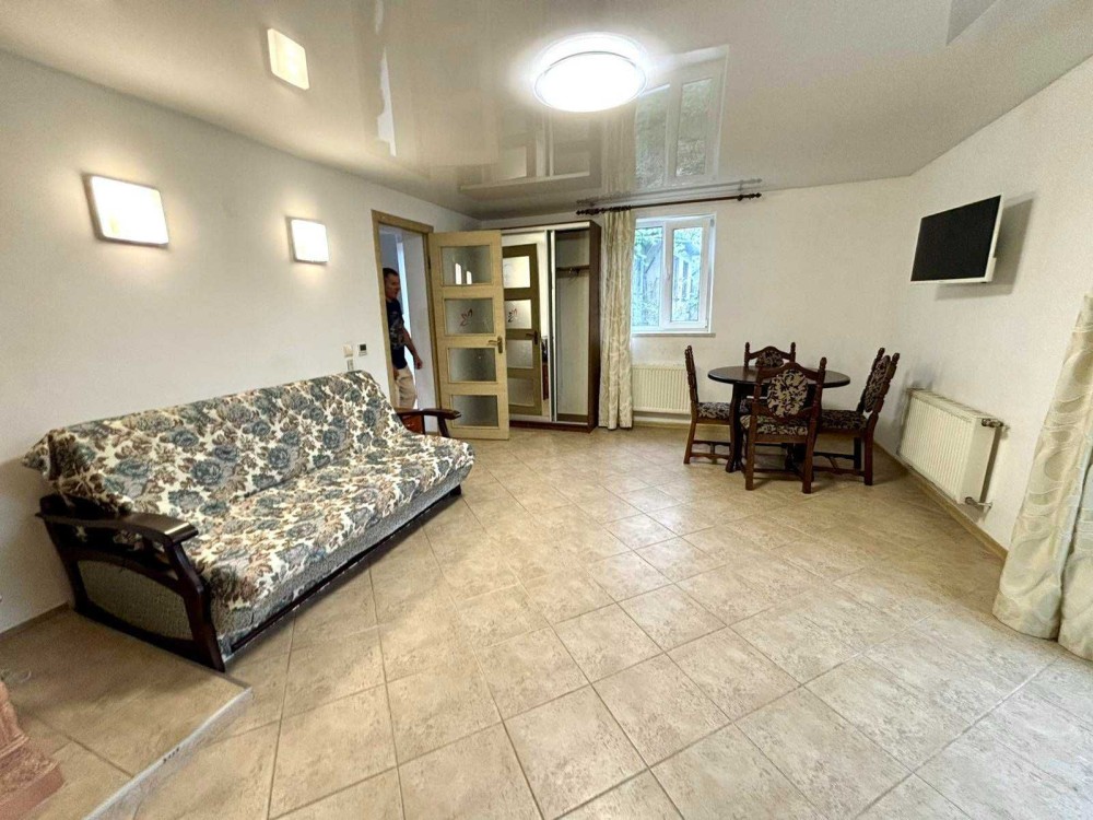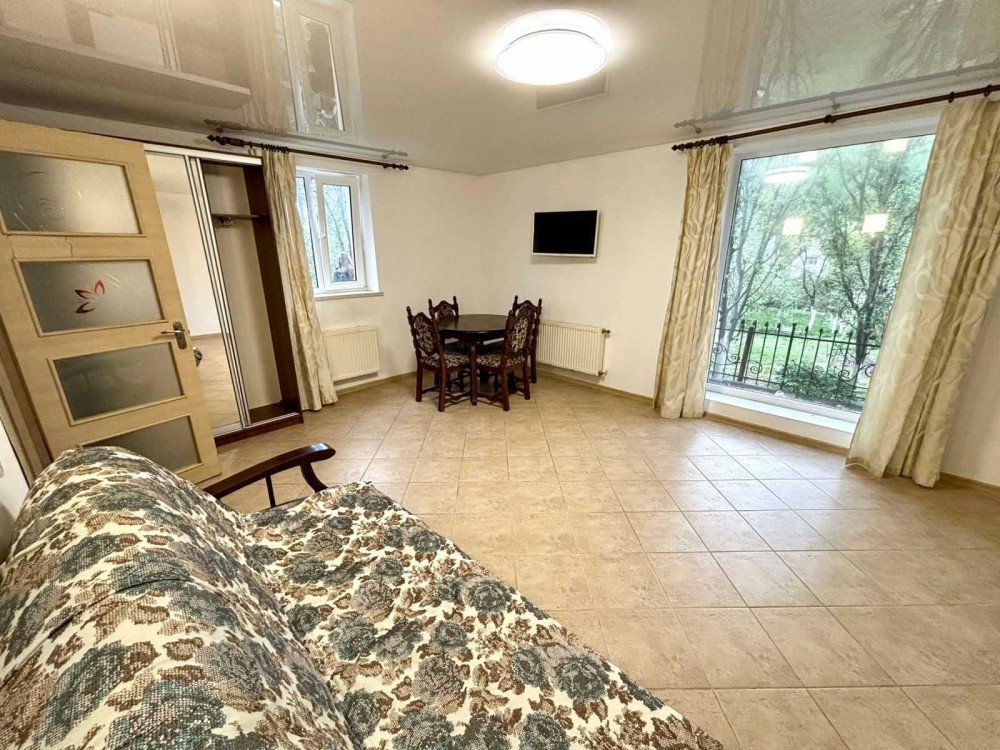 Здається в оренду квартира з власним двором, неподалік центру міста, 2 кімнати, вітальня з каміном, кухня та ванна.