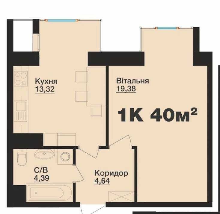 • Общая площадь 40 м2