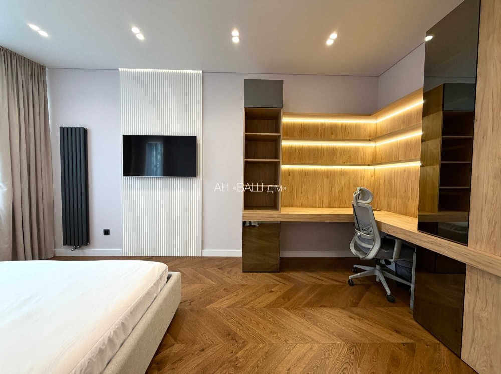 Квартира розділена на зони / окрема спальня / робоча зона / гардеробна / кухня + зона відпочинку.