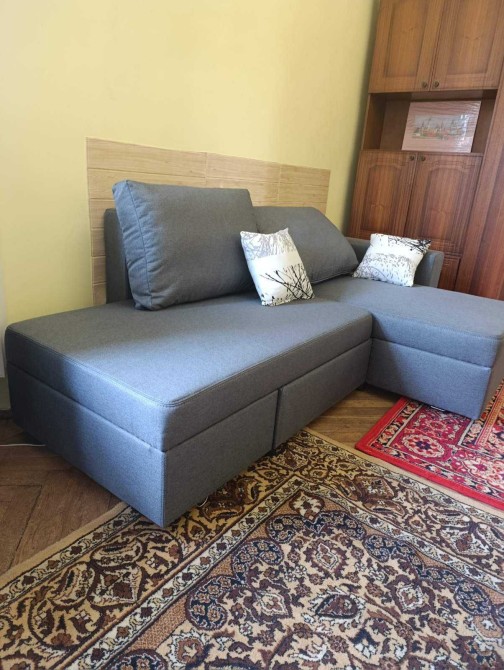 В квартирі є необхідна побутова техніка та меблі (диван).
