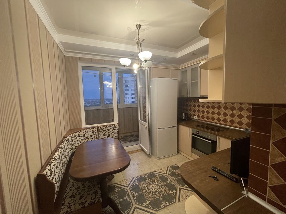 Площа 42 кв м . Поверх 20/25. Повна комплектація : вбудована кухня , обідня зона. Комплектація побутовою технікою , холодильник , варочна поверхня , духова шафа , кондиціонер . Балкон застіклений та утеплений . Своя прибудинкова територія . Консьєрж .