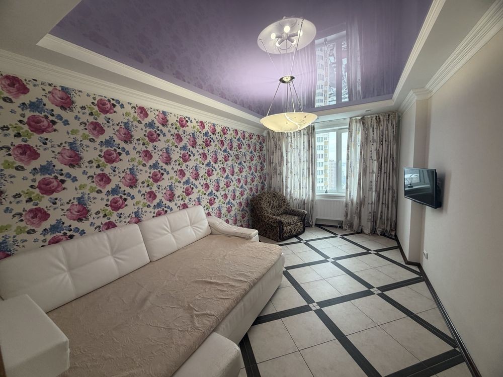 Перша здача. Пропонується в оренду сучасна квартира в новобудові біля м. Житомирська (Берестейський пр-т, 131а). В будинку є генератор (завжди є опалення, вода та працює ліфт). Квартира укомплектована всіма необхідними меблями та технікою. У кімнаті - двоспальне ліжко, розкладний диван, письмовий стіл, кондиціонер, телевізор, велика шафа для одягу. Санвузол суміщений, душова кабінка. Тихий двір, велика парковка. До метро Житомирська - 10 хвилин пішки. Вартість 16000 грн. Умови оренди: оплата за два місяці та послуги рієлтора (50%). комісія: 50%