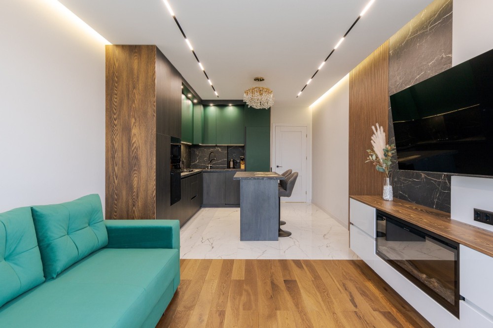 Кухня-студія - 2ох спальний диван-куток, електричний камін, плазма.