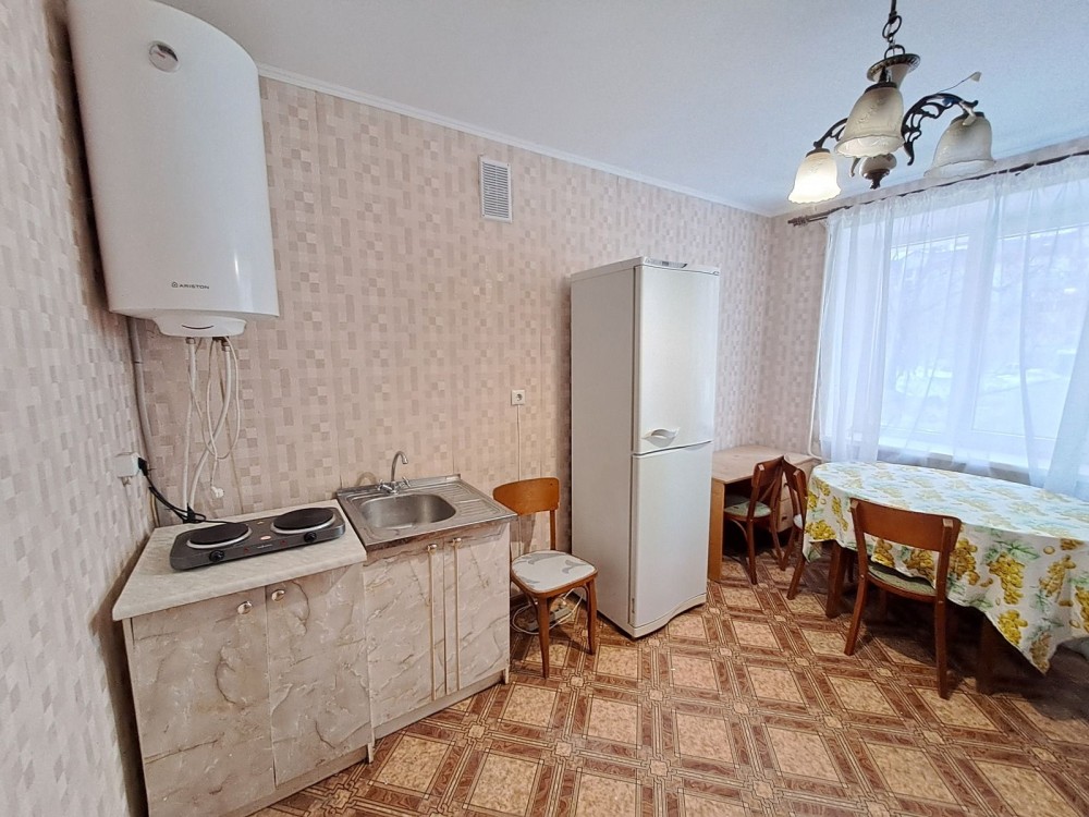 Оренда 1км квартири по вул.Карпенка, Дружба. Квартира розташована на першому поверсі. Опалення централізоване + бойлер на гарячу воду. Будинок цегляний, утеплений. З меблів є два дивани та шафа, з техніки холодильник і електрична плита. Зручне місцерозташування, поруч зупинка громадського транспорту, супермаркети, паркова зона.