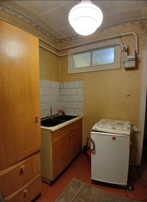 В квартирі є меблі та техніка окрім пральної машини.