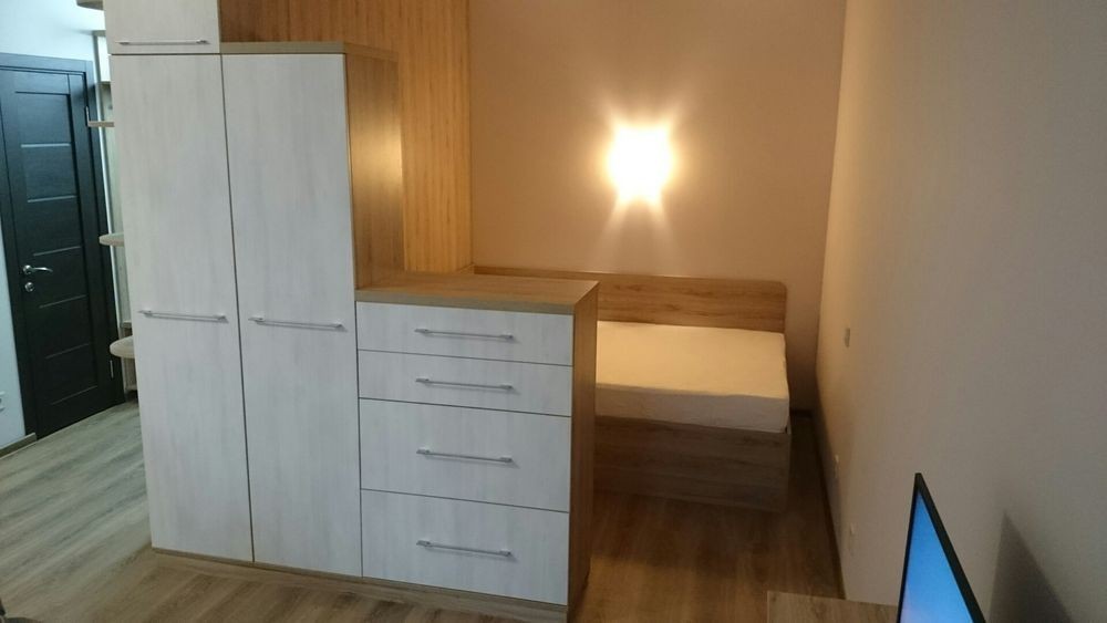 Оренда 1 кім. квартира -студія в ЖК "Шоколад" вул. Шевченка 80 (ближній центр). Двоспальне ліжко, диван, кондиціонер, телевізор. Є закритий балкон. Є вся необхідна побутова техніка. Опалення індивідуальне ( котел). Закртита територія.
